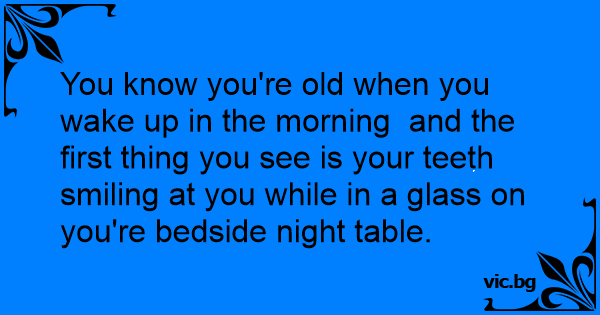 You know you're old when you wake up in the morning and the first thing you see is your teeth smiling at you while in a glass on you're bedside night table.
