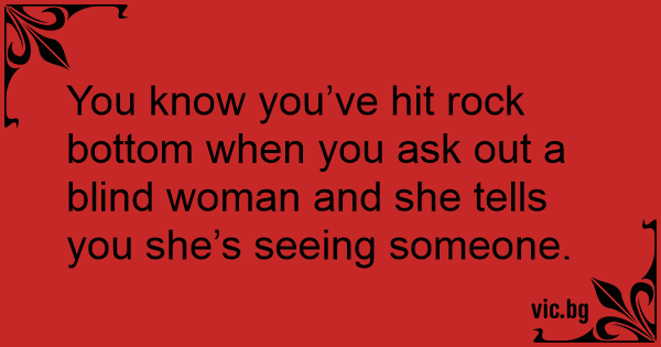 You know you’ve hit rock bottom when you ask out a blind woman and she tells you she’s seeing someone.
