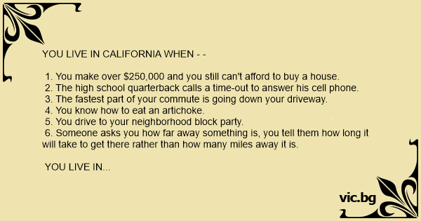 YOU LIVE IN CALIFORNIA WHEN - -