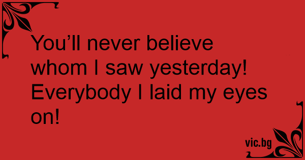 You’ll never believe whom I saw yesterday! Everybody I laid my eyes on!