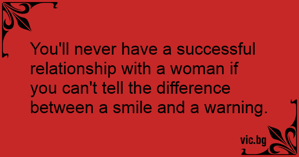 You'll never have a successful relationship with a woman if you can't tell the difference between a smile and a warning.
