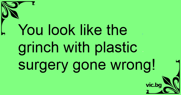 You look like the grinch with plastic surgery gone wrong!