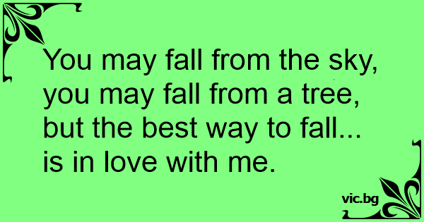 You may fall from the sky, you may fall from a tree, but the best way to fall... is in love with me.