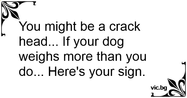 You might be a сrаск head... If your dog weighs more than you do... Here's your sign.