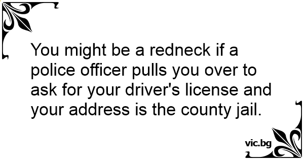 You might be a redneck if a police officer pulls you over to ask for your driver's license and your address is the county jail.