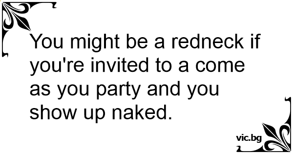 You might be a redneck if you're invited to a come as you party and you show up nакеd.