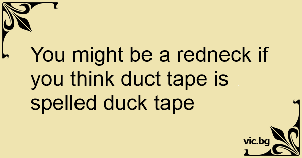 You might be a redneck if you think duct tape is spelled duck tape
