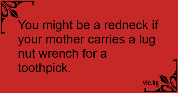 You might be a redneck if your mother carries a lug nut wrench for a toothpick.