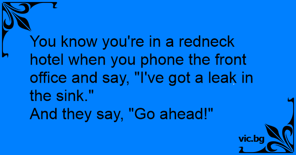 You know you're in a redneck hotel when you phone the front office and say, "I've got a leak in the sink."