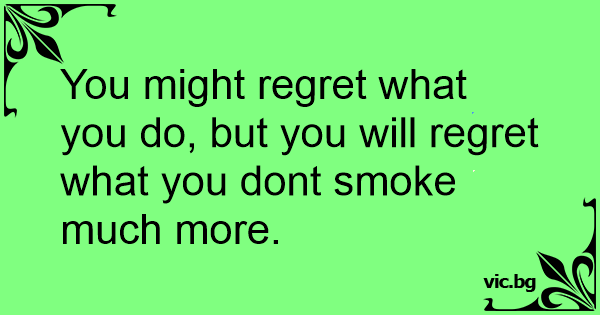 You might regret what you do, but you will regret what you dont smoke much more.