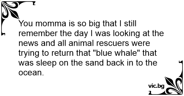 You momma is so big that I still remember the day I was looking at the news and all animal rescuers were trying to return that "blue whale" that was sleep on the sand back in to the ocean.