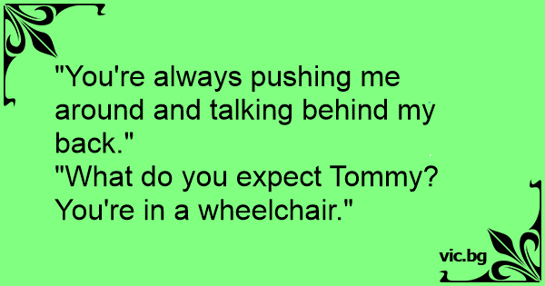 "What do you expect Tommy? You're in a wheelchair."