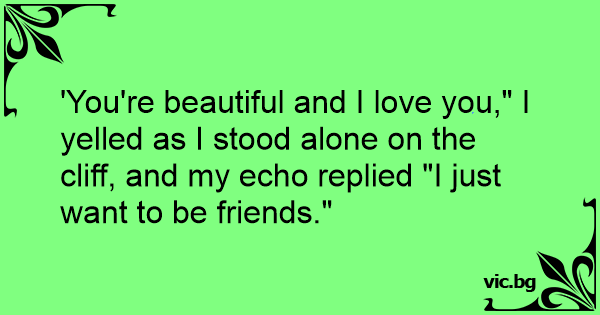 'You're beautiful and I love you," I yelled as I stood alone on the cliff, and my echo replied "I just want to be friends."
