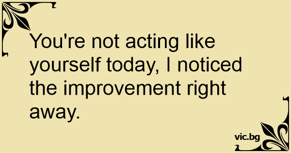 You're not acting like yourself today, I noticed the improvement right away.