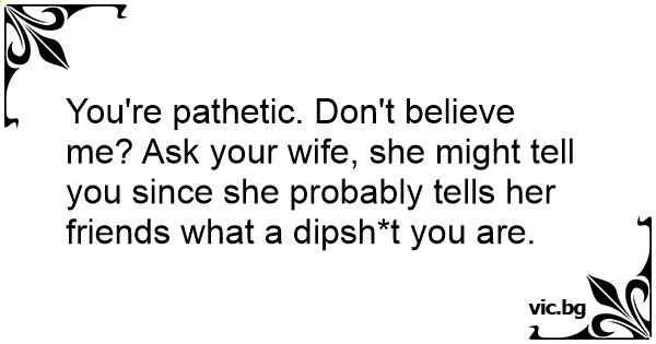 You're pathetic. Don't believe me? Ask your wife, she might tell you since she probably tells her friends what a dipsh*t you are.