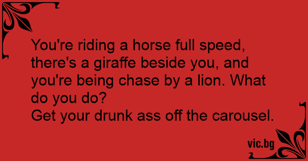 You're riding a horse full speed, there's a giraffe beside you, and you're being chase by a lion. What do you do?