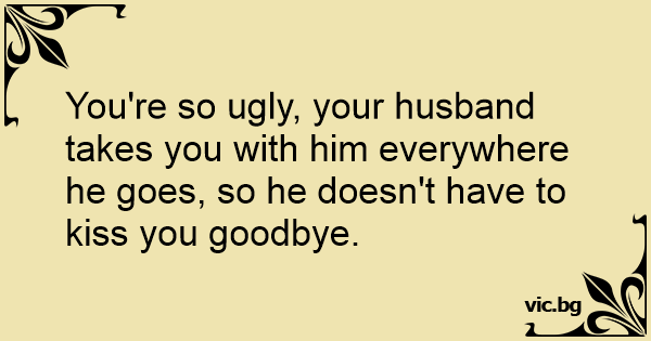 You're so ugly, your husband takes you with him everywhere he goes, so he doesn't have to kiss you goodbye.