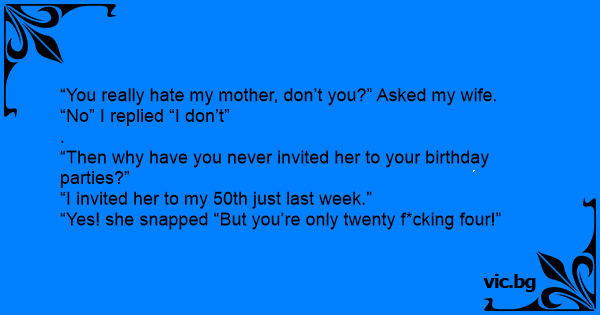 “You really hate my mother, don’t you?” Asked my wife.