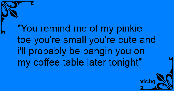 "You remind me of my pinkie toe you're small you're cute and i'll probably be bangin you on my coffee table later tonight"