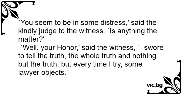`Well, your Honor,' said the witness, `I swore to tell the truth, the whole truth and nothing but the truth, but every time I try, some lawyer objects.'
