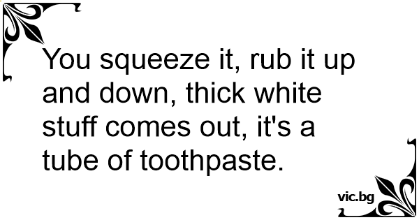 You squeeze it, rub it up and down, thick white stuff comes out, it's a tube of toothpaste.
