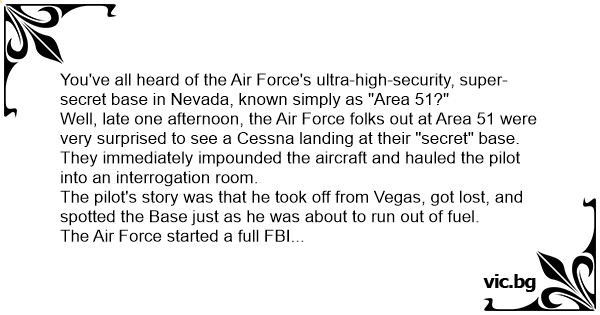 Well, late one afternoon, the Air Force folks out at Area 51 were very surprised to see a Cessna landing at their "secret" base.