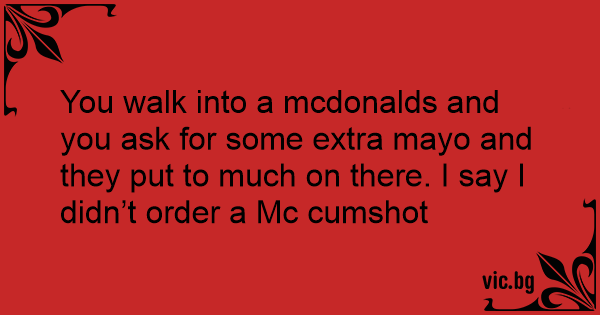 You walk into a mcdonalds and you ask for some extra mayo and they put to much on there. I say I didn’t order a Mc cumshot