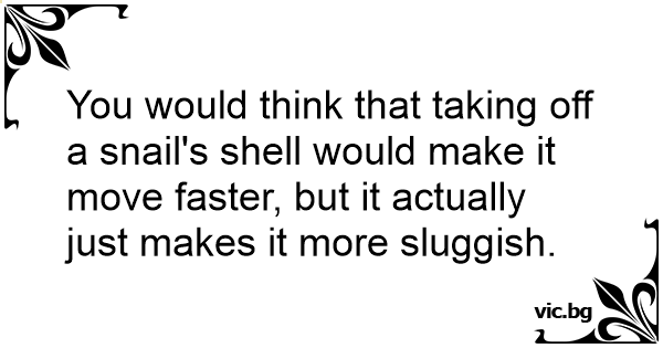 You would think that taking off a snail's shell would make it move faster, but it actually just makes it more sluggish.