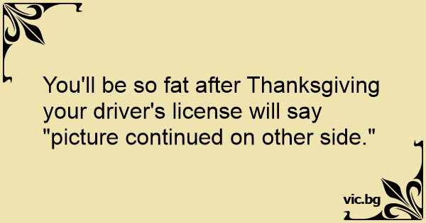You'll be so fат after Thanksgiving your driver's license will say "picture continued on other side."