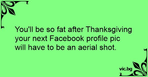 You'll be so fат after Thanksgiving your next Facebook profile pic will have to be an aerial shot.