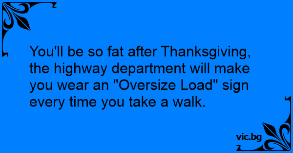 You'll be so fат after Thanksgiving, the highway department will make you wear an "Oversize Load" sign every time you take a walk.<br />