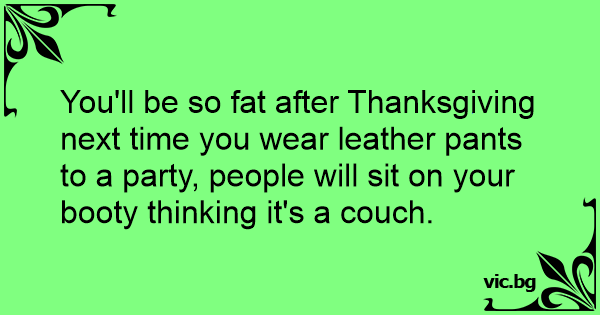 You'll be so fат after Thanksgiving next time you wear leather pants to a party, people will sit on your воотy thinking it's a couch.
