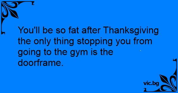 You'll be so fат after Thanksgiving the only thing stopping you from going to the gym is the doorframe.