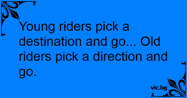 Young riders pick a destination and go... Old riders pick a direction and go.