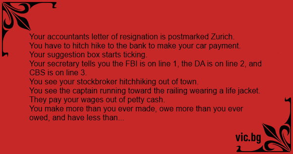 Your accountants letter of resignation is postmarked Zurich.