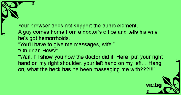 A guy comes home from a doctor’s office and tells his wife he’s got hemorrhoids.