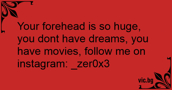 Your forehead is so huge, you dont have dreams, you have movies, follow me on instagram: _zer0x3