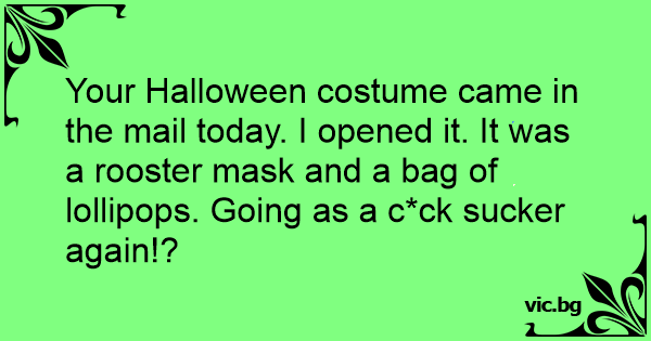 Your Halloween costume came in the mail today. I opened it. It was a rooster mask and a bag of lollipops. Going as a c*ck sucker again!?