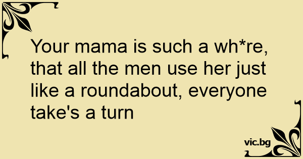 Your mama is such a wh*re, that all the men use her just like a roundabout, everyone take's a turn 23 0 0 Insult Jokes Men jokes Yo Momma Jokes