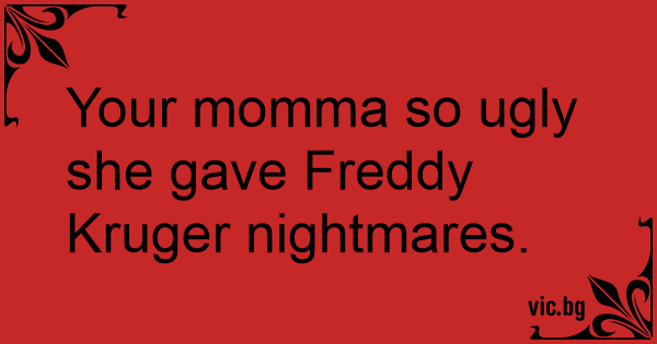 Your momma so ugly she gave Freddy Kruger nightmares.