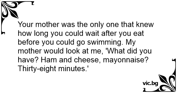 Your mother was the only one that knew how long you could wait after you eat before you could go swimming. My mother would look at me, 'What did you have? Ham and cheese, mayonnaise? Thirty-eight minutes.'