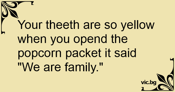 Your theeth are so yellow when you opend the popcorn packet it said "We are family."
