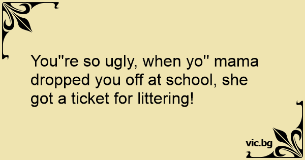 You''re so ugly, when yo'' mama dropped you off at school, she got a ticket for littering!