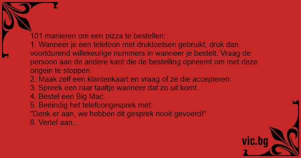 52. Bestel een gemengde pizza en zeg dan: