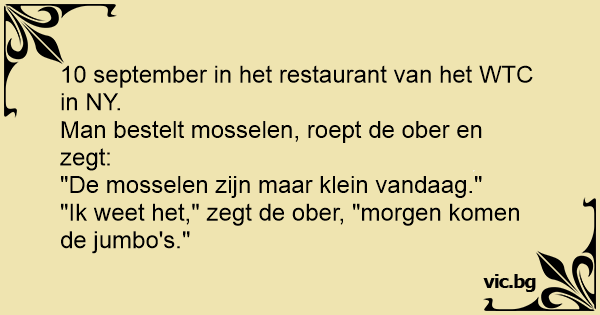 "Ik weet het," zegt de ober, "morgen komen de jumbo's."