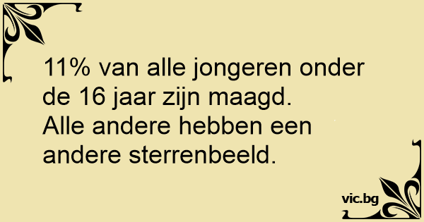 11% van alle jongeren onder de 16 jaar zijn maagd.