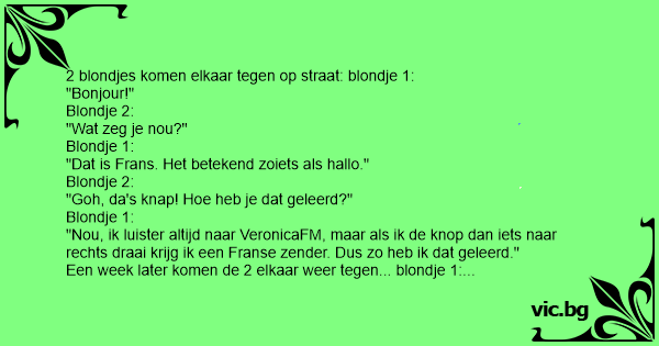Een week later komen de 2 elkaar weer tegen... blondje 1: