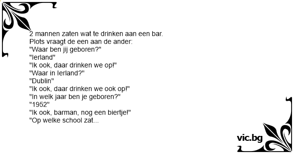 "Oh, niets speciaals, de O'Heiley tweeling is weer dronken!!!"
