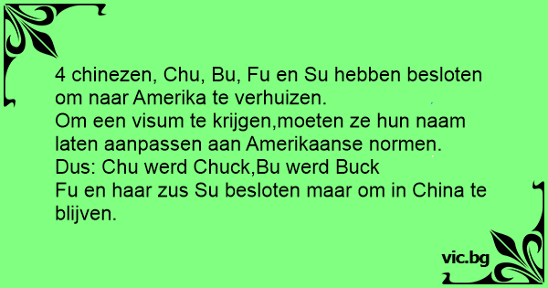 4 chinezen, Chu, Bu, Fu en Su hebben besloten om naar Amerika te verhuizen.