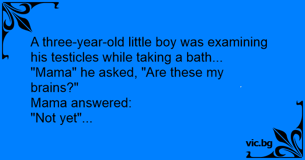A three year old little boy was examining his testicles while he was bathing. "Mom", he asked, "is that my brain?" "Not yet", she answered.